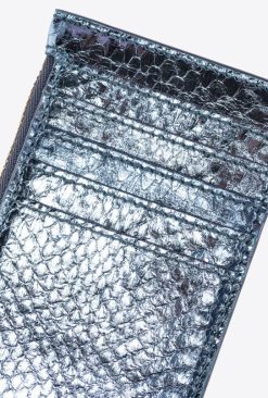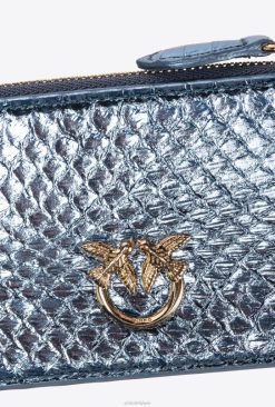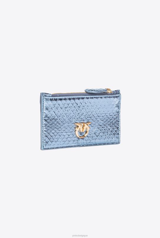 Pinko porte-cartes zippé Galleria en peau de reptile laminée B244D1179 pochettes | bleu clair-or brillant