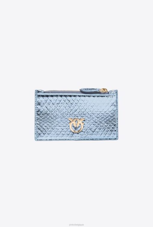 Pinko porte-cartes zippé Galleria en peau de reptile laminée B244D1179 pochettes | bleu clair-or brillant