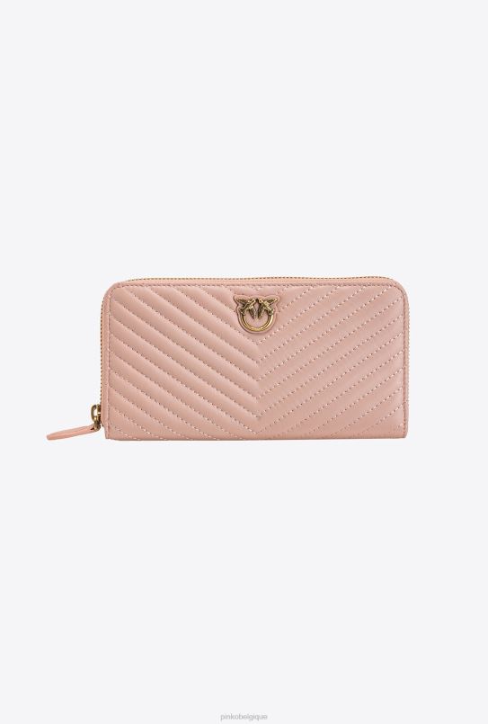 Pinko portefeuille zippé en nappa à motif chevrons B244D1159 sacs à main | vieux rose-or antique