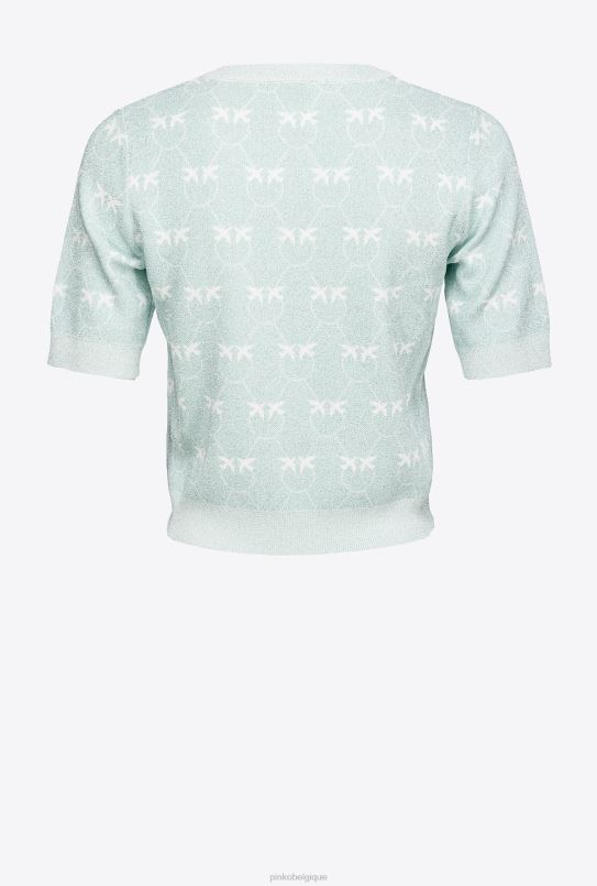 Pinko pull court à monogramme en lurex B244D450 pulls | aigue-marine/blanc