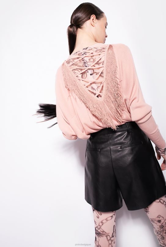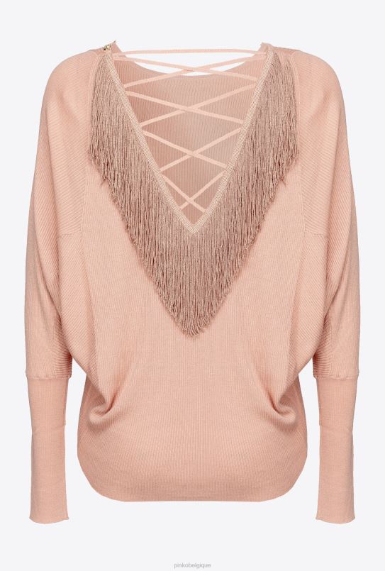 Pinko pull décontracté avec dos frangé B244D526 pulls | rose argile
