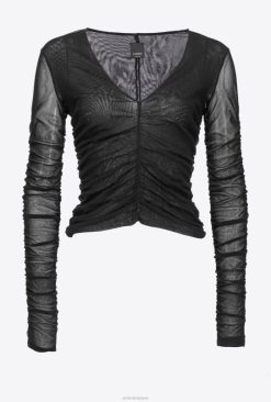 pull à manches longues et col en V en tulle stretch semi-transparent avec détail drapé all-over.