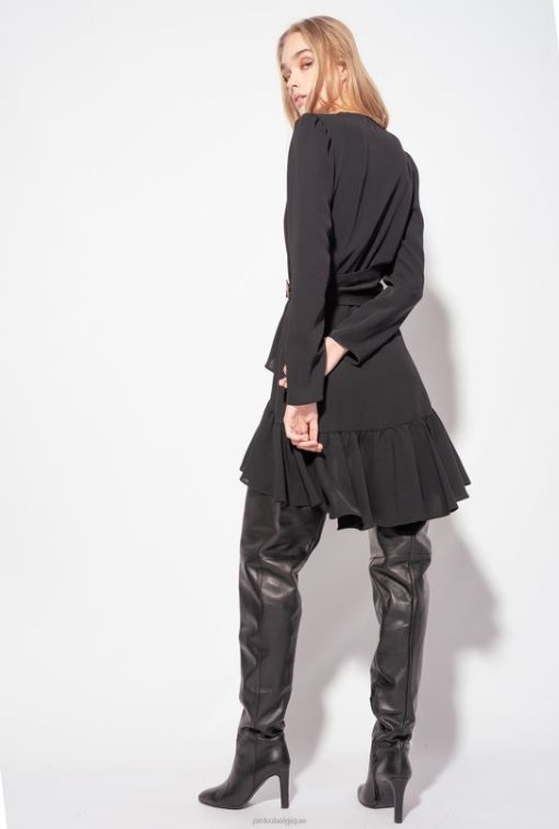 Pinko robe avec ceinture love bird B244D218 robes courtes | limousine noire