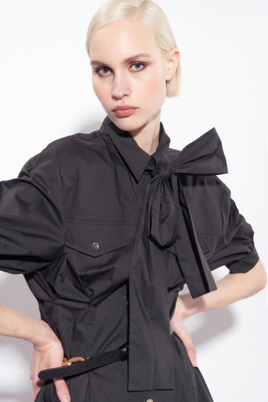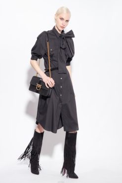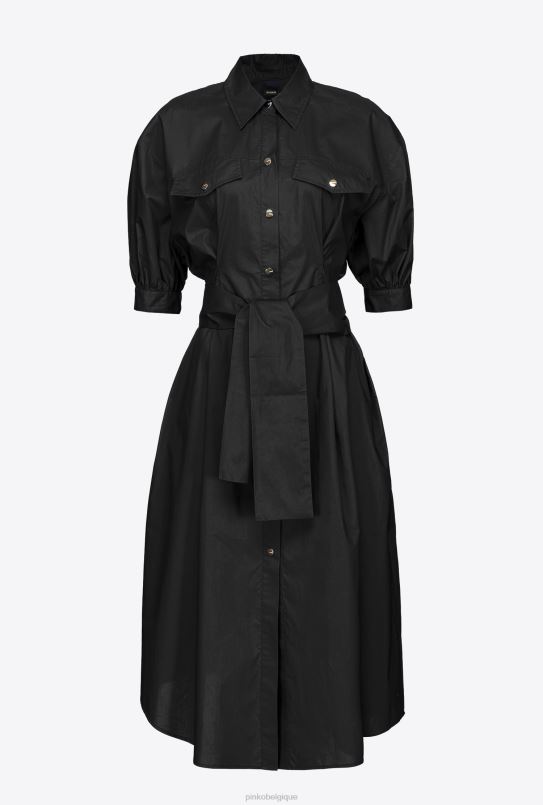 Pinko robe chemise en popeline de coton avec ceinture B244D39 robes mi-longues | limousine noire