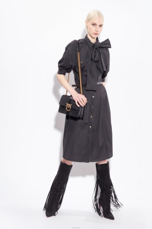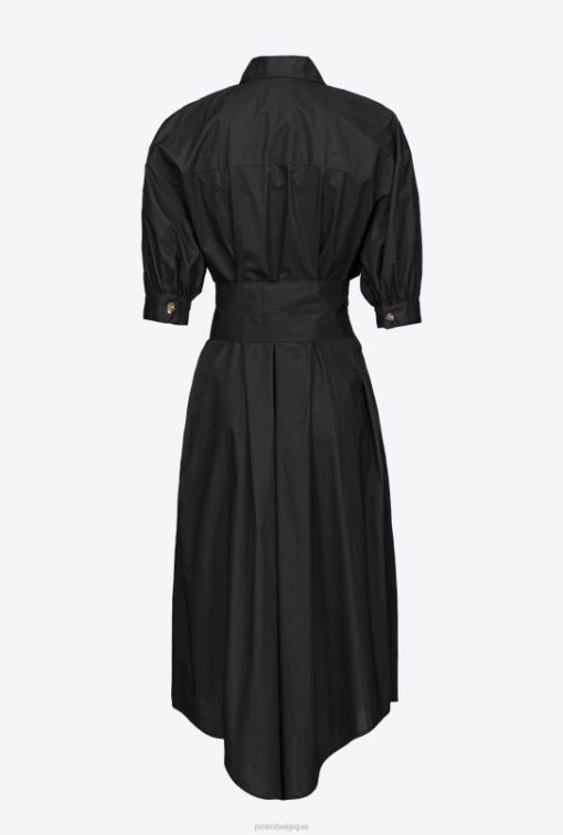 Pinko robe chemise en popeline de coton avec ceinture B244D39 robes mi-longues | limousine noire