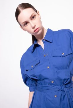 Pinko robe chemise en popeline de coton avec ceinture B244D40 robes mi-longues | bleu