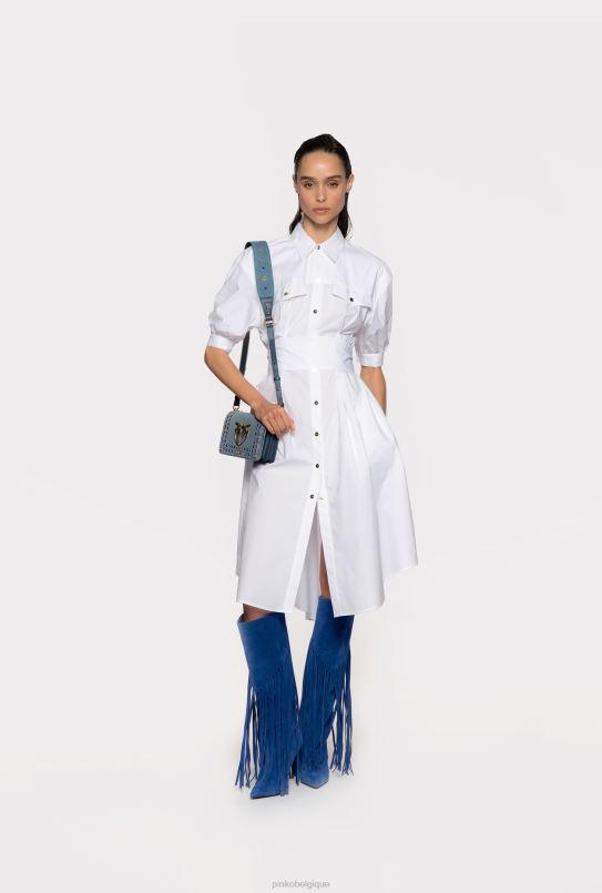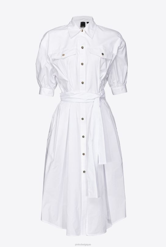 Pinko robe chemise en popeline de coton avec ceinture B244D41 robes mi-longues | blanc brillant