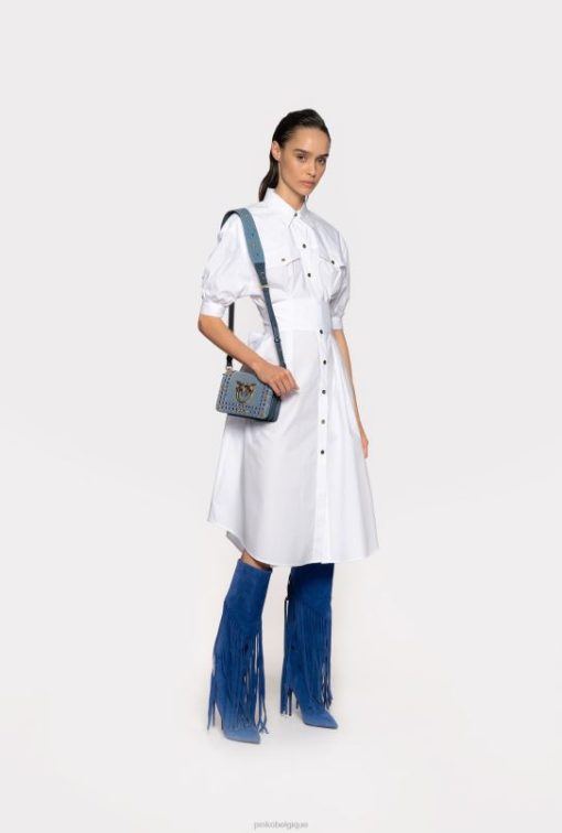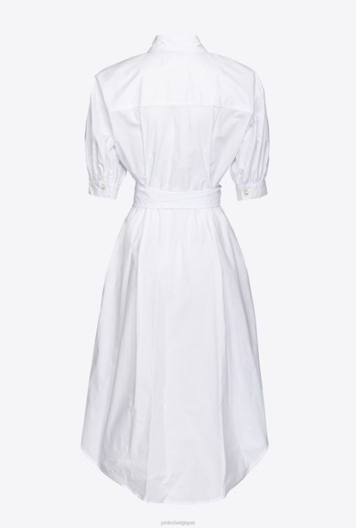 Pinko robe chemise en popeline de coton avec ceinture B244D41 robes mi-longues | blanc brillant