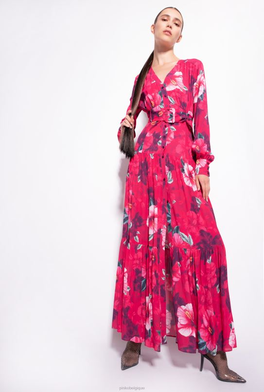 Pinko robe chemise longue à imprimé hibiscus B244D141 robes longues | multi. fuchsia/rose