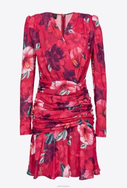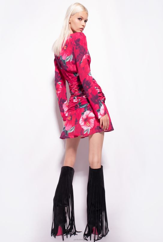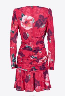 Pinko robe courte à imprimé hibiscus B244D139 robes courtes | multi. fuchsia/rose