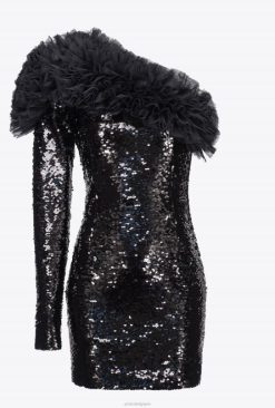 Pinko robe courte asymétrique entièrement sequine B244D173 robes courtes | limousine noire