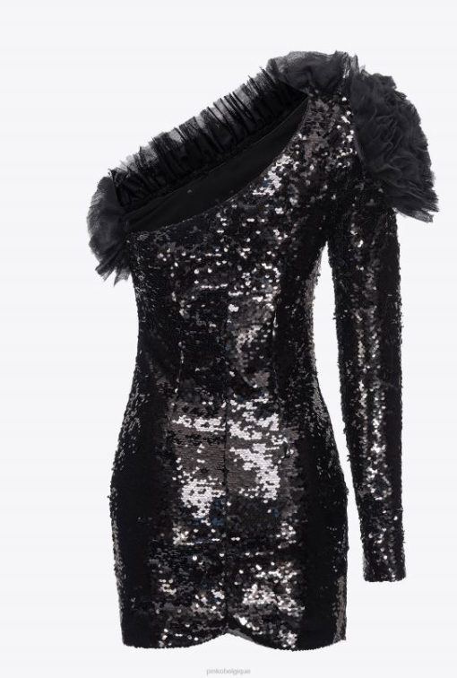 Pinko robe courte asymétrique entièrement sequine B244D173 robes courtes | limousine noire