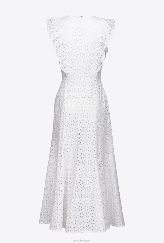Pinko robe en coton avec broderie anglaise B244D225 robes mi-longues | blanc brillant
