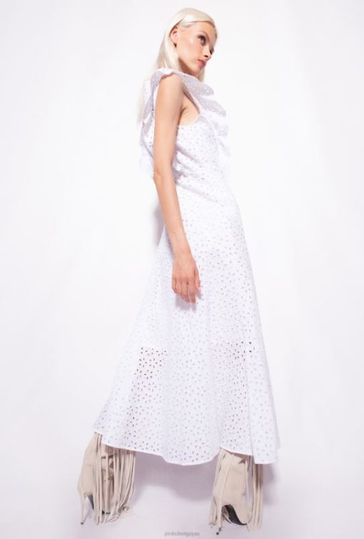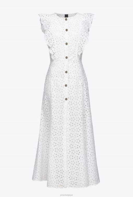 Pinko robe en coton avec broderie anglaise B244D225 robes mi-longues | blanc brillant
