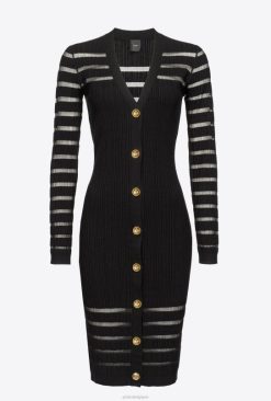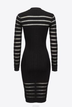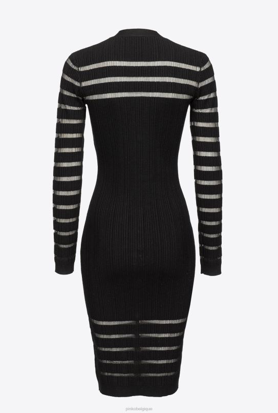 Pinko robe en maille rayée B244D222 robes mi-longues | limousine noire