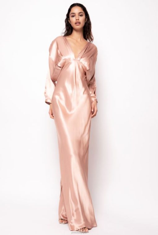 Pinko robe en satin avec nœud B244D110 robes longues | camée rose