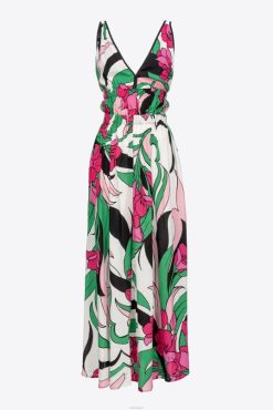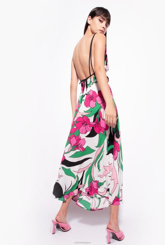 Pinko robe fluide à imprimé fleuri B244D42 robes longues | multicolore noir/fuchsia