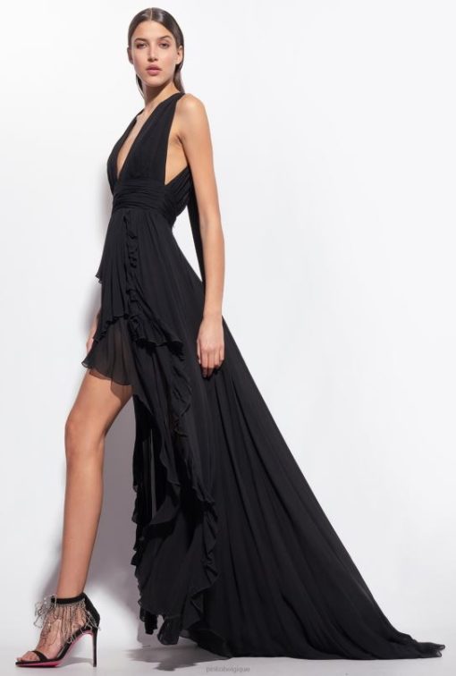 Pinko robe longue à volants B244D186 robes longues | limousine noire