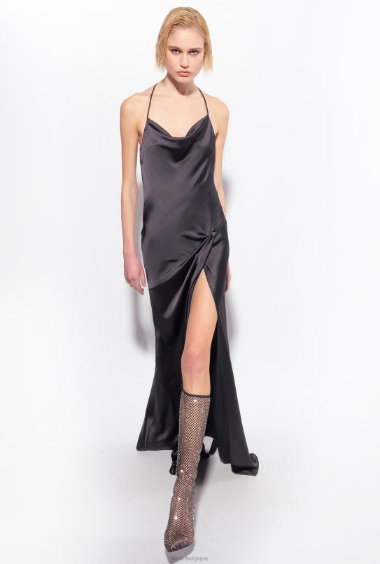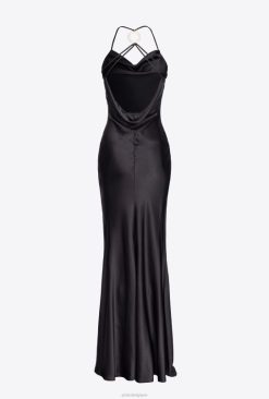 Pinko robe longue en satin avec détail anneau B244D48 robes longues | limousine noire