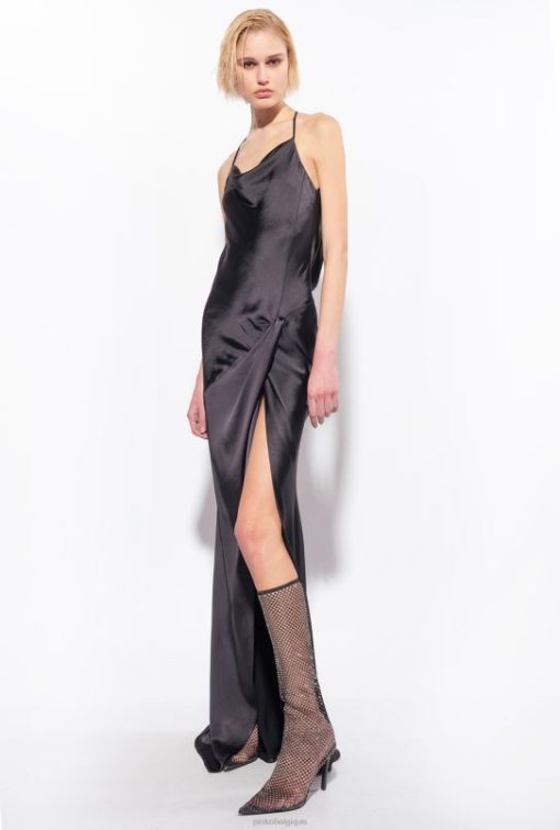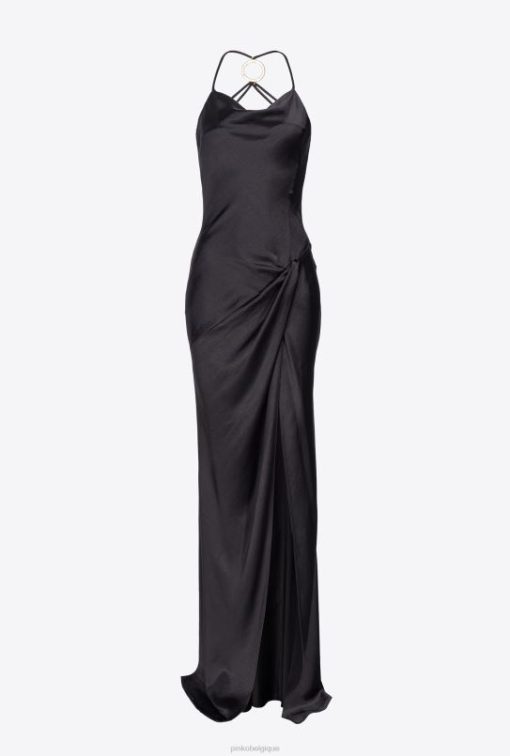 Pinko robe longue en satin avec détail anneau B244D48 robes longues | limousine noire