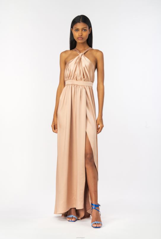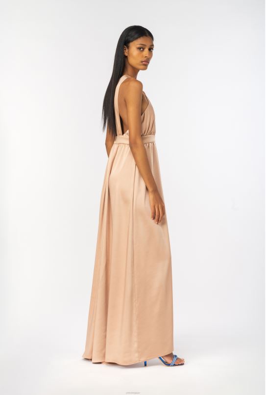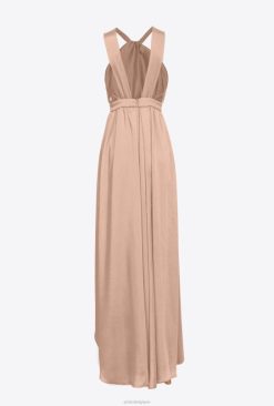 Pinko robe longue en satin avec fente B244D50 robes longues | camée rose