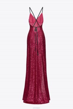 Pinko robe longue et élégante avec des paillettes partout B244D203 robes longues | fuchsia/gris