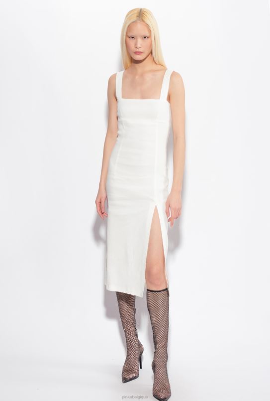 Pinko robe mi-mollet en lin stretch B244D121 robes mi-longues | nuage blanc