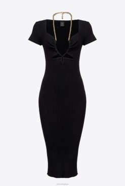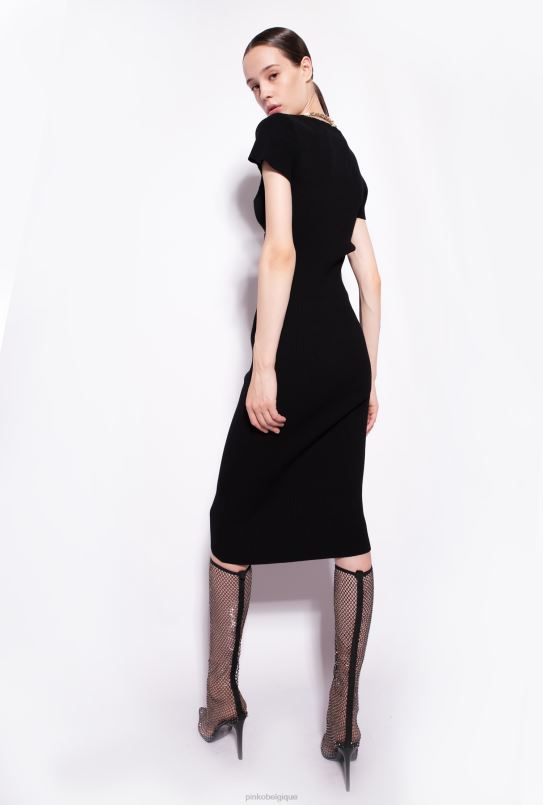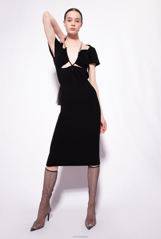 Pinko robe mi-mollet en maille avec chaîne B244D71 robes mi-longues | limousine noire