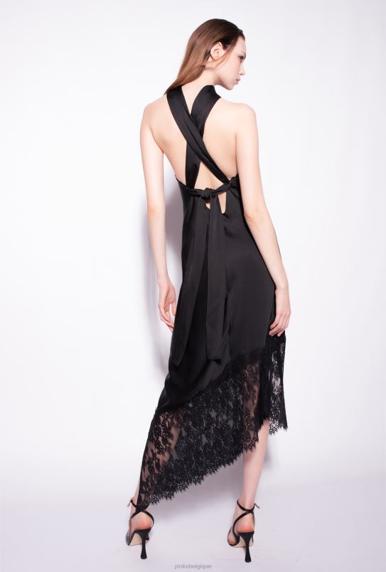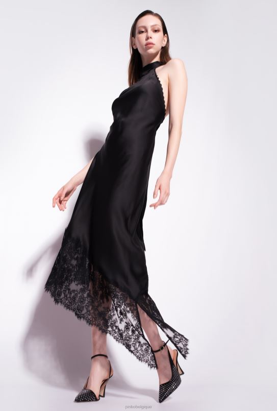 Pinko robe midi dos nu avec dentelle B244D223 robes mi-longues | limousine noire