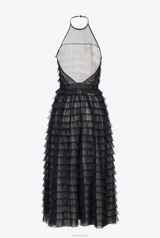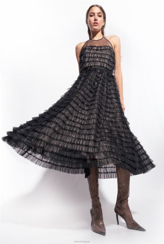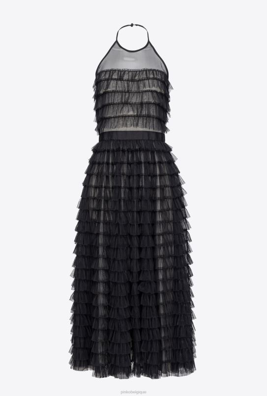 Pinko robe midi en tulle à volants B244D116 robes mi-longues | noir/nu