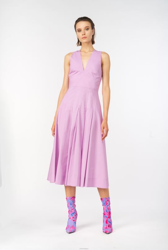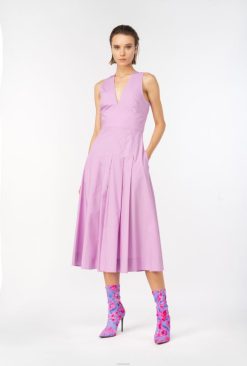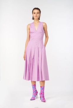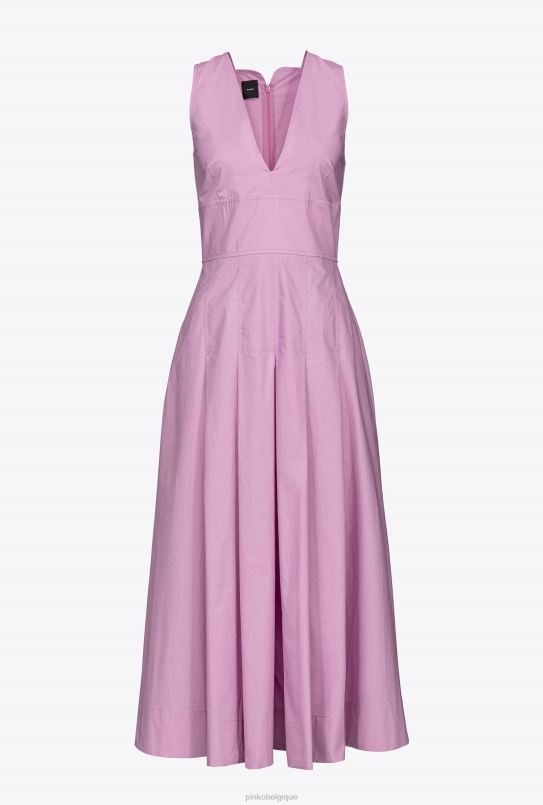 robe midi sans manches en popeline de coton. col V, taille cintrée avec surpiqûres et jupe plissée. Fermeture zippée centrale dissimulée au dos. – le mannequin mesure 178 cm et porte une taille 40.