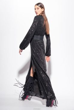 Pinko robe portefeuille à sequins B244D197 robes longues | limousine noire