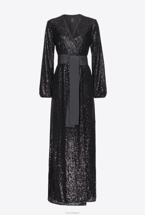 Pinko robe portefeuille à sequins B244D197 robes longues | limousine noire