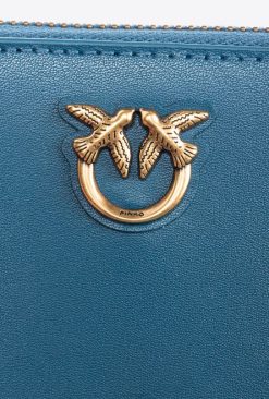 Pinko sac à main carré en cuir à fermeture éclair B244D1144 sacs à main | sarcelle-or antique