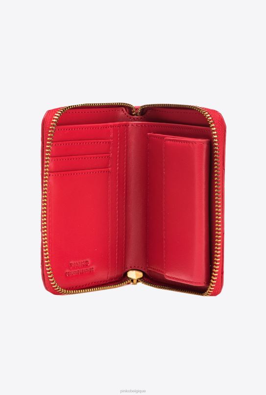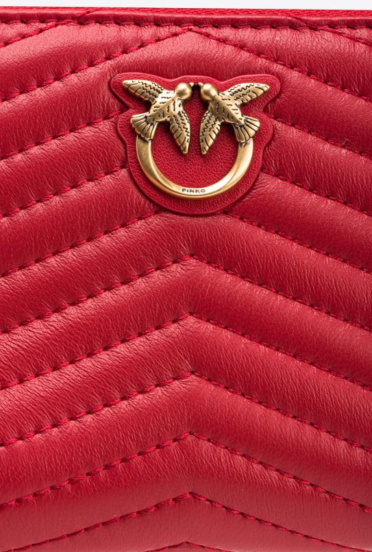 Pinko sac à main carré zippé en cuir nappa matelassé B244D1139 sacs à main | rouge grenat-or antique