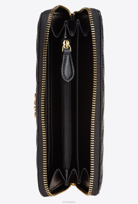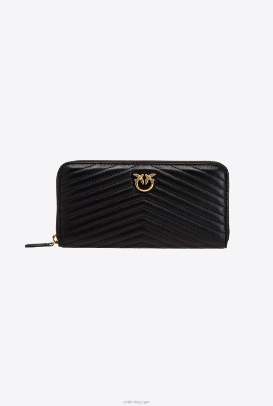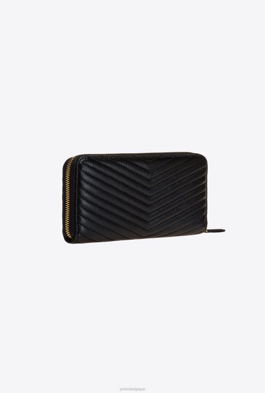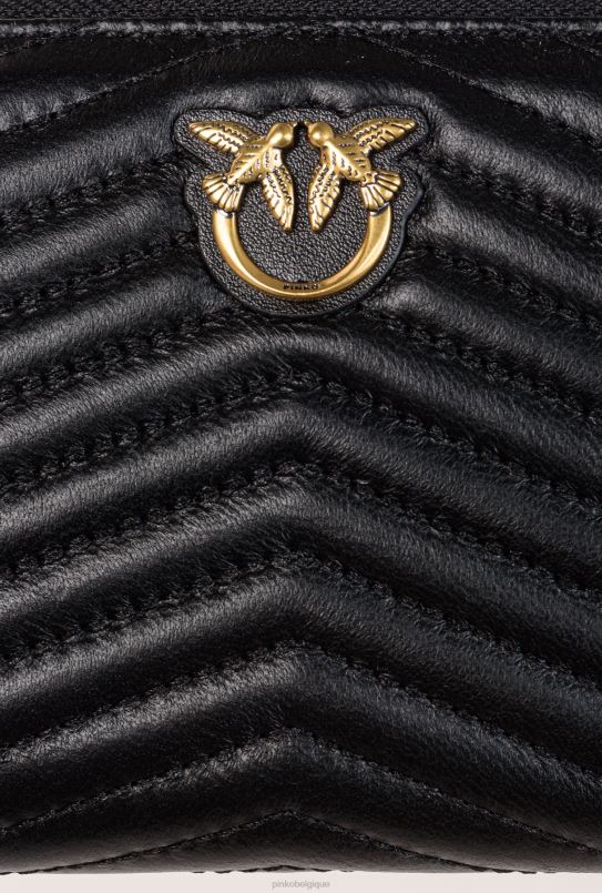 Pinko sac à main zippé en cuir nappa à motif chevrons B244D1155 sacs à main | noir-or antique