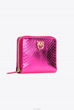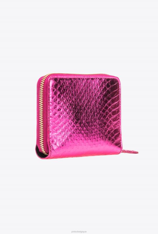 Pinko sac à main zippé Galleria en peau de reptile laminée B244D1175 sacs à main | or fuchsia brillant