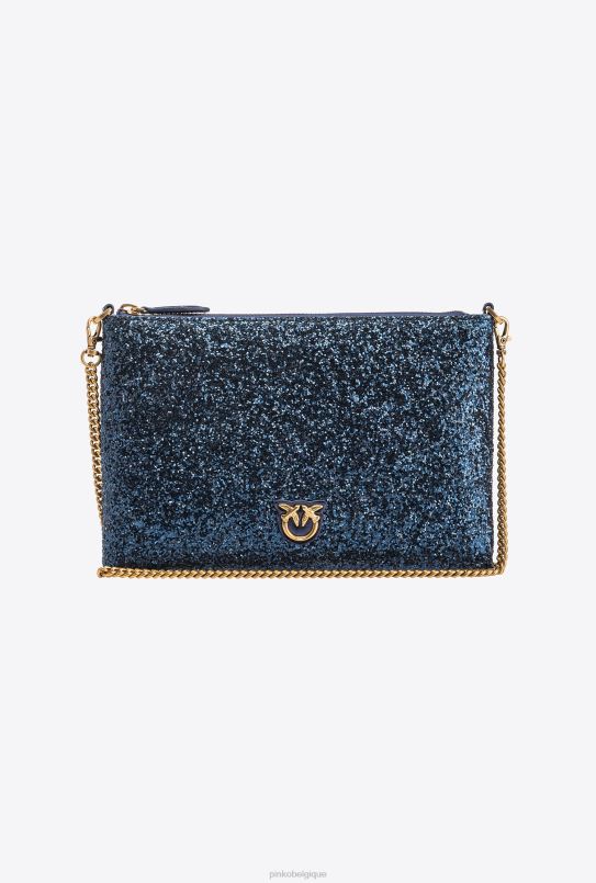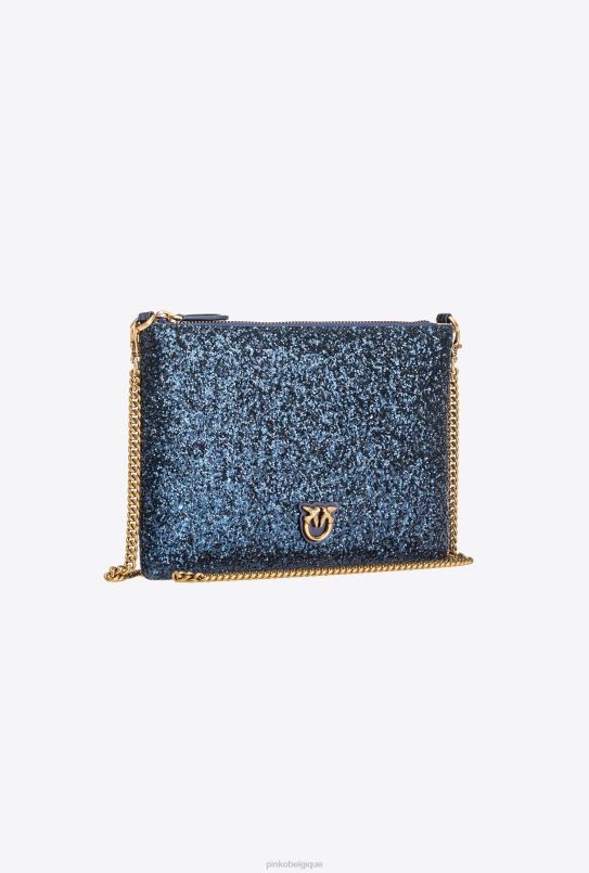 Pinko sac d’amour plat classique pailleté B244D1198 sacs à bandoulière | clématite bleu-or antique