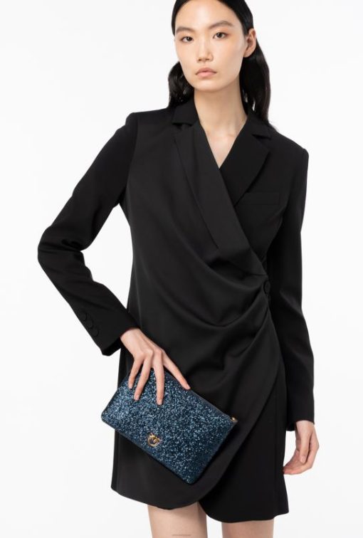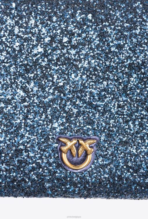Pinko sac d’amour plat classique pailleté B244D1198 sacs à bandoulière | clématite bleu-or antique