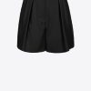 short légèrement ample en crêpe stretch. taille haute, passants de ceinture, pinces sur le devant, poches avant en biais et petite poche passepoilée au dos. fermeture zippée et crochet.