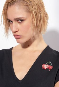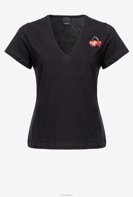 Pinko t-shirt avec broderie cerise B244D454 tee-shirt | limousine noire