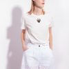 t-shirt à manches courtes en jersey de coton avec mini logo pinko et petit cœur brodé de perles.
