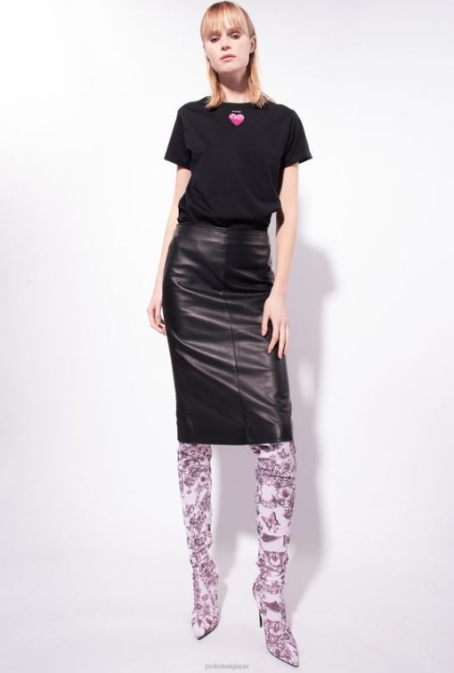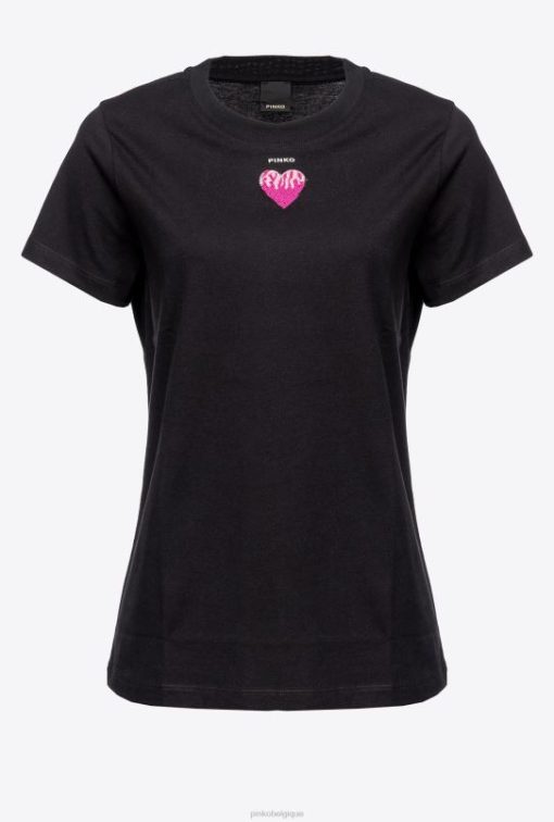 Pinko t-shirt avec broderie coeur B244D445 tee-shirt | limousine noire