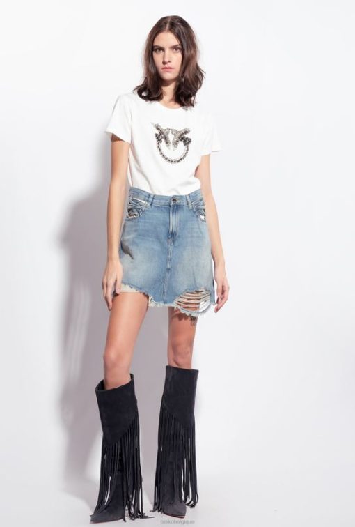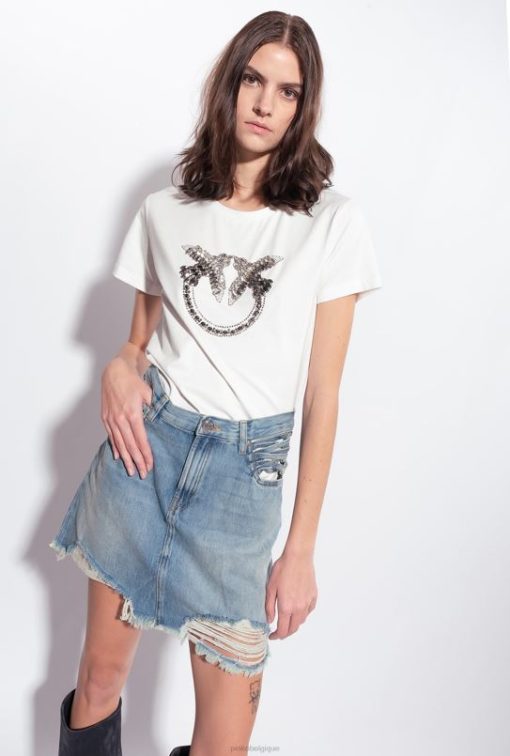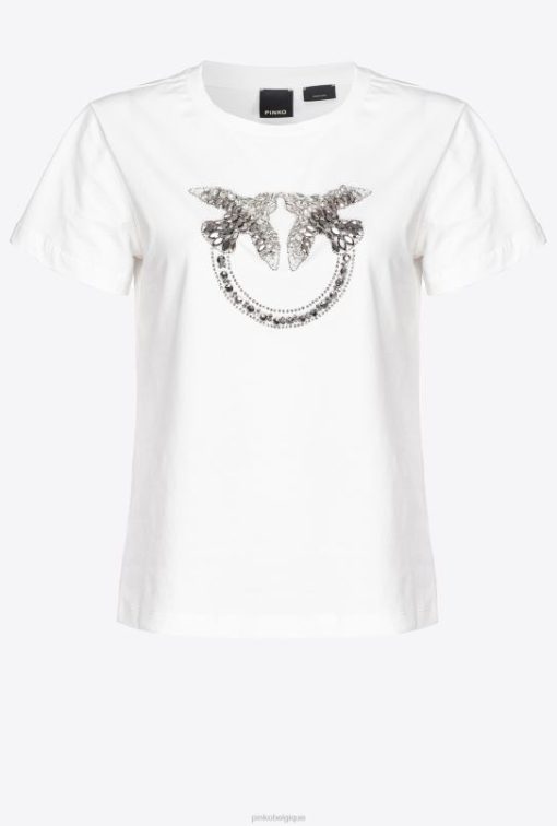 Pinko t-shirt avec broderie oiseaux d’amour B244D352 tee-shirt | nuage blanc