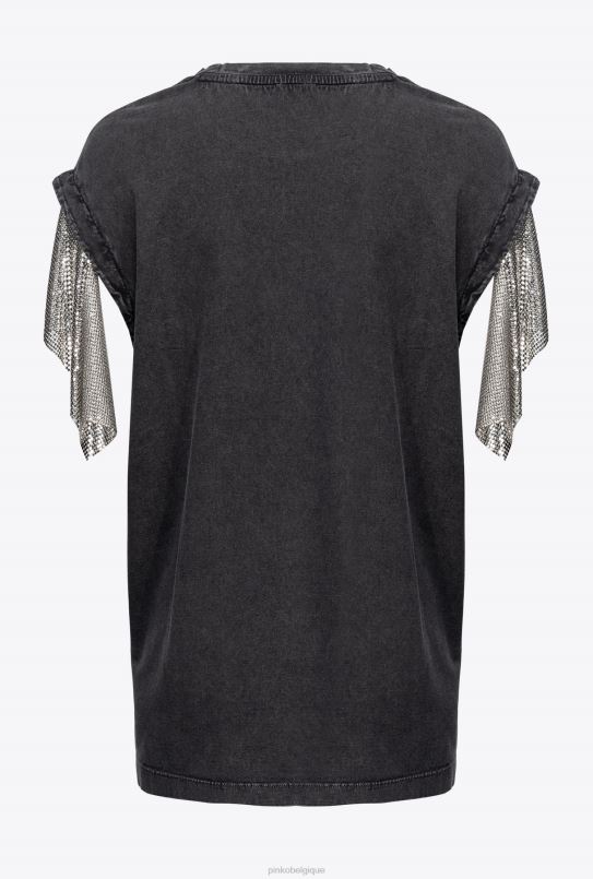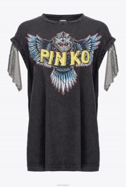 Pinko t-shirt long à ailes et logo B244D381 tee-shirt | gris-noir de jais