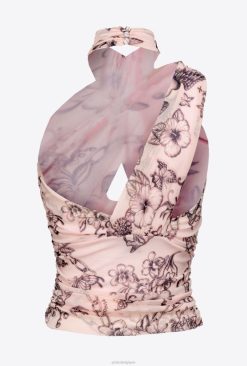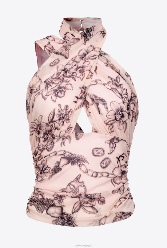 haut asymétrique en tulle stretch sans manches avec imprimé tatouage. pièce ajustée avec col montant et col croisé avec découpe sur le devant. dos ouvert avec bandoulière. fermeture par petits boutons recouverts sur la nuque. – le mannequin mesure 175 cm et porte une taille 40.