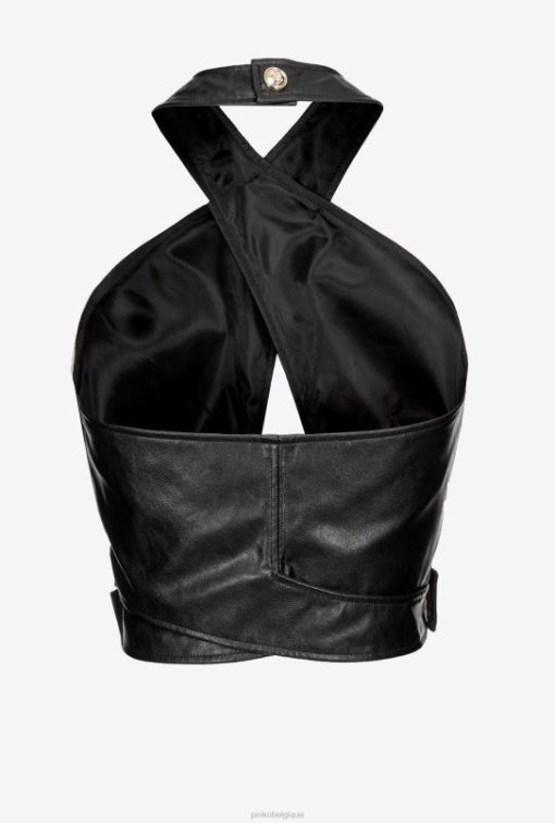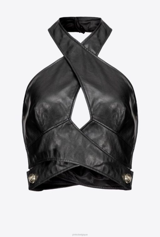 Pinko top court en similicuir B244D435 haut | limousine noire