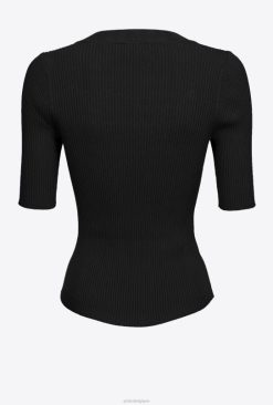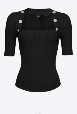 Pinko top en maille côtelée avec boutons dorés B244D492 pulls | limousine noire