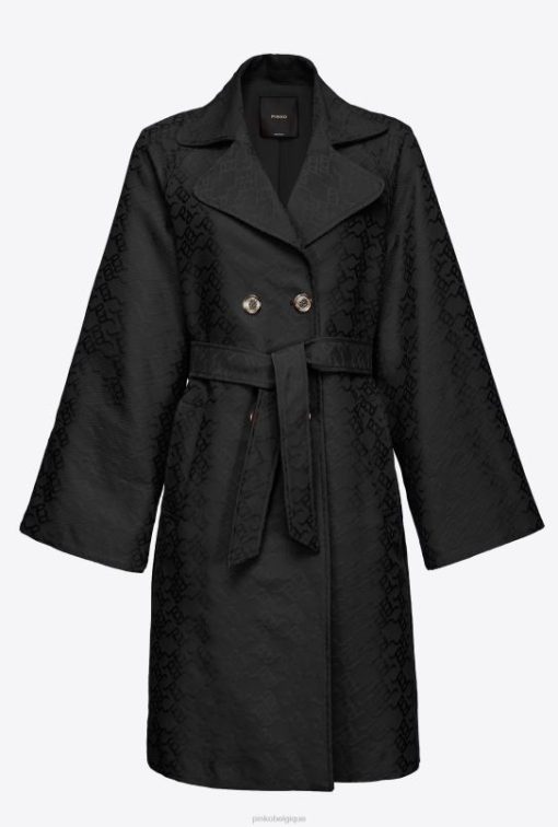 Pinko trench-coat en jacquard avec motif logo B244D838 manteaux | limousine noire