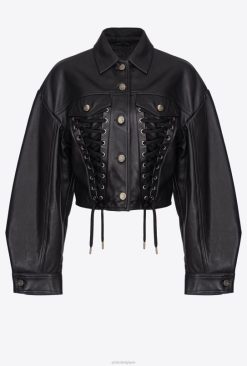 Pinko veste en cuir avec laçage B244D819 vestes décontractées | limousine noire